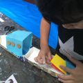 牛乳パックベースの船です。だから牛乳パック持ってきてね〜。牛乳パック忘れないでね〜。牛乳パック使うよ〜。