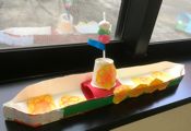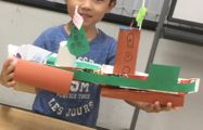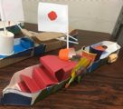 すみません・・・牛乳パック連呼・・・しつこかったか・・・みなさんにずいぶん気を遣わせてしまったようです。全て貸し会場までの自転車操業なもので・・・どうかお許しを・・・。御陰さまでなんとかなりまして、もう大丈夫。いろんな豪華客船が誕生してきています。大きなテレビがついてたり、ハンバーガーがどっさり積んであったり、大きな帆船やら、階段や滑り台、それぞれ好きなようにやってくれています。・・・貸し会場だというのに、いま、教室は船だらけ・・・お許しをっ♪♪♪