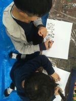 あさひくんのおかあさんから「何か工作に使ってください」って、小さな袋をたくさんいただきまして・・・なんかね・・・両端に両面テープがついてるんですよ・・・なんだろう・・・なんの袋なんだろう・・・いったいどこへ行く予定だった袋なんだろう・・・と考えること数ヶ月。本来の目的は結局わからないままなのですが、ちょっと思いつきました。やっとお目見えでございます。