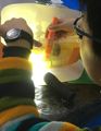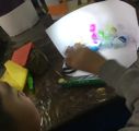 ライトを動かすと影もあっちへ行ったり、こっちへ来たり、大きくなったり小さくなったり、薄くなったり濃くなったり・・・そうだね、影は黒いだけじゃない。