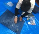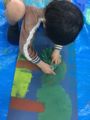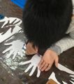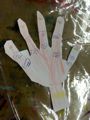 「あれっ?!右手と左手とシワが違う?」「あ、指の長さも違う」あらためてよく観ると違うよねぇ。それぞれ手ガタをとって、よぉ〜く観て、見つけたものをどんどん描いて…深いシワがあるところは曲がるところ、鉛筆持つとどんなふう?ハサミを持つとどんなふう?グー・チョキ・パーできるかな?