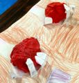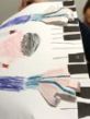 さて、小さいらぴすっこさんたちが頑張ったのも意外だったのですが(また失礼)、「早くママに見せたい!!」と、持って帰るひとが多かったのも意外・・・でした。やっぱ、おとなが「上手〜〜」って言うタイプの絵をこどもたちも感じとっているんでしょうね。誰だって褒められると嬉しいし、褒められたいって気持は否定しません。絵の評価で「この絵は正確な描写ができてますねぇ〜。サイノウあります。」なんて言葉をちょくちょく聞きますが、「正確な描写」って言い方はちょっと違うんじゃないか、三次元のものを二次元に置き換えた時点で「正確」って言えないんじゃないか、あくまでも人間の目の錯覚を利用して「それっぽく」見せる技を身につけているかどうかで(またヘリクツだ)、それで絵の良し悪しを決めるのは、なんかなぁ〜とわたしは、わたしはですが、わたしはですよ、思う訳です。「このこはぐちゃぐちゃな絵しか描けない」ってお悩みを聞くこともあるんですが、「ただのぐちゃぐちゃ」か、そうでない「探究心の結果としてのぐちゃぐちゃ」か、見誤ると、それこそサイノウを潰してしまいかねない・・・思い込みには気をつけよう。