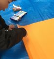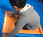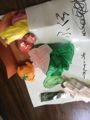 予定にはなかったのですが、細長い画用紙が結構ありましたんで、「これで立つものを作ってみて」ってことで・・・。「立てへぇ〜〜ん」「考えれば立つよ」「倒れてくるぅ〜〜」「考えよう」あまりヒントは出さないようにして・・・。で・・・みんな立ちました。