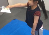こちらは土曜クラス。発泡トレーに結構余裕があったこのクラスは、予定していた大きい方も作りました。これまた工夫が必要です。バランスも大事だし、飛ばし方にもちょっとしたコツがいる。「飛んだっ!!」自分で工夫すると喜びもひ・と・し・お