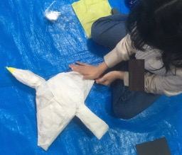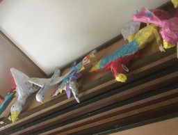 ずう〜〜っと前に磯貝先生に教えてもらった鳥さんをつくります。針金ハンガーにぃ〜新聞紙でお肉をつけてぇ〜それからそれから……2時間みっちりやって、続きはまた来週。鳥さんたち羽休めです。