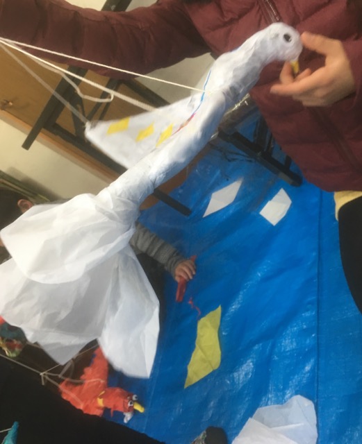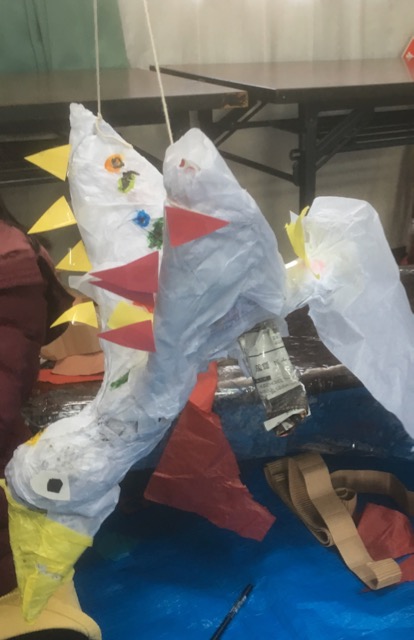 何言ってんだか……なタイトルをつけてしまいましたが、毎年恒例の作品収納バッグです。まずは「バッグとは何たるか」ってことを長々と語り合い、作業開始。で、今回バッグのカタチへの工夫は見られませんでしたが、提げ手に用意した毛糸や麻紐やビニール紐なんかで、色を組み合わせて編んでみたり、結び方を考えたり、みんな2時間いっぱいがんばりました。