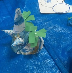 連休明け……いつまで言ってんだか……脳内整理脳内整理。いろいろ調整しなければならないことがあり、番外編を投入。番外編……実はよくやります。ここで紹介していないものも多々あります。お休みのひとが多かったり、振替のひとが多かったり、材料の調達がうまくいかなかったりすると、みんなが違和感なく楽しめるように、脳内をぐるぐる回転させて。「まるまるの木」っていくつもの○で作っていく木です。決して「モチモチの木」のパクリではありません。「モチモチの木」は大好きな絵本です。斎藤隆介の胸に染み入るような話、滝平二郎の温かく力強い切り絵……おっと話がそれた…脳内整理脳内整理。木になったひともいれば、太陽の塔っぽくなったひと、ジェットコースターの土台になったひと、いろいろいます。いろいろあっていろいろいい……ん?みんなちがってみんないい……だな。