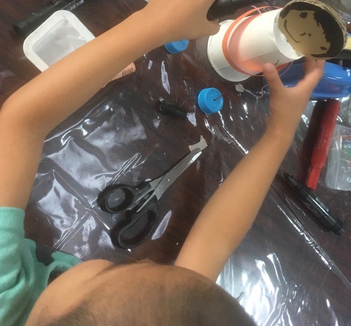 微妙に余った紙コップ、微妙に余った円形ダンボール、微妙に余った紐、うなるほどあるペットボトルキャップ……これで何ができるかな〜って考えて、こういうことになりました……こういうことってどういうことやねんっ!まったりとお話しながら、ゆっくり作って、また来週。