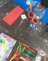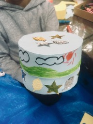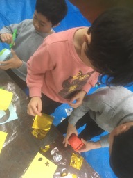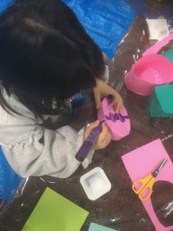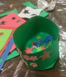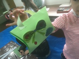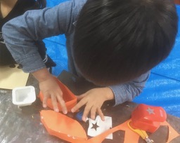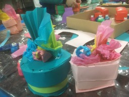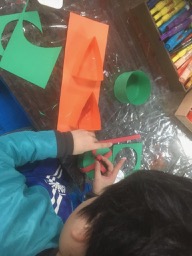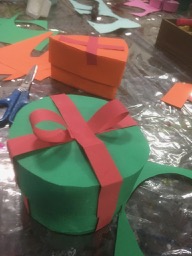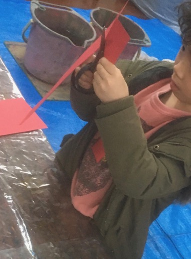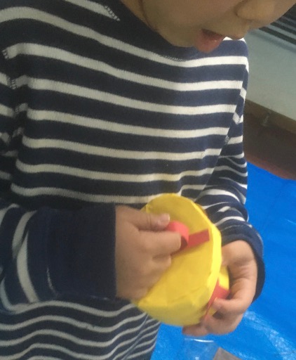 バレンタインにはちょっと出遅れましたが……、誰かにプレゼントを考えるって楽しくもあり苦しくもあり……そんなこんなでプレゼントの箱。まずは基本形の丸い箱、それから好きな形の箱……と3つぐらいは作れるかなぁ〜なんて思っていましたが、凝り性のらぴすっこさんたち、そう簡単には済まないようで、「はい、あと10分で帰る用意するよぉ〜」「うそやんっ!!」「ぜんぜん間に合えへんっ!!」「あかん、時間のばしてっ!!」結局、持ち帰って続きをやるひと、次回続きをやるひとがたくさん。さあて、みんな何を入れるんでしょうね〜。ふつう〜の色画用紙で作ったので、そう重いものはいれられないのですが、「ぼくは貯金箱にする」って、自分で考えて補強したひともいました。
