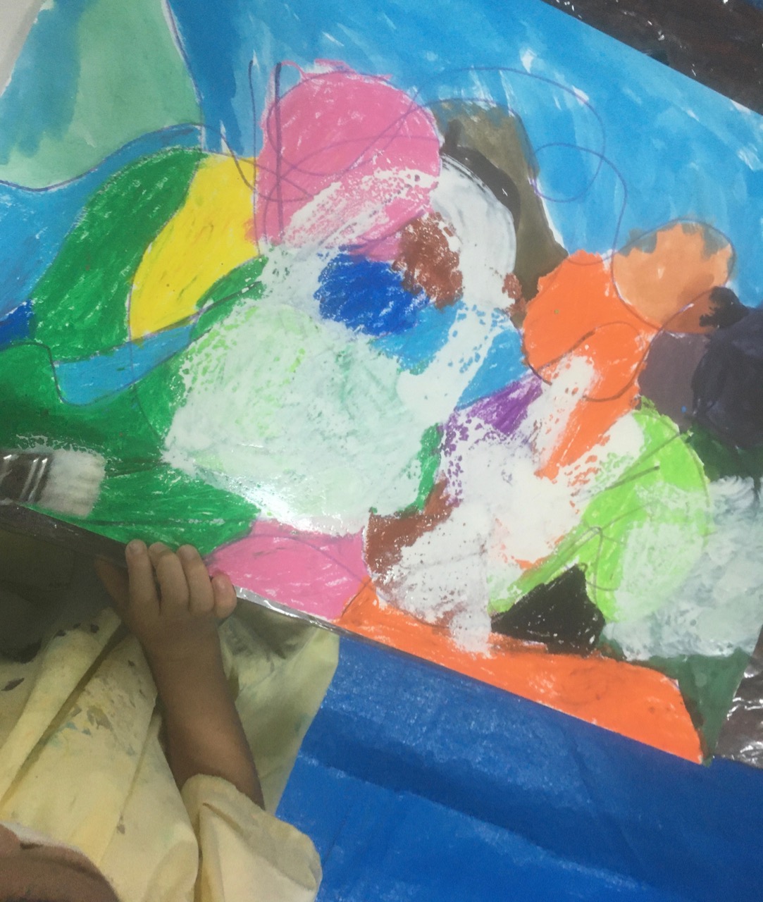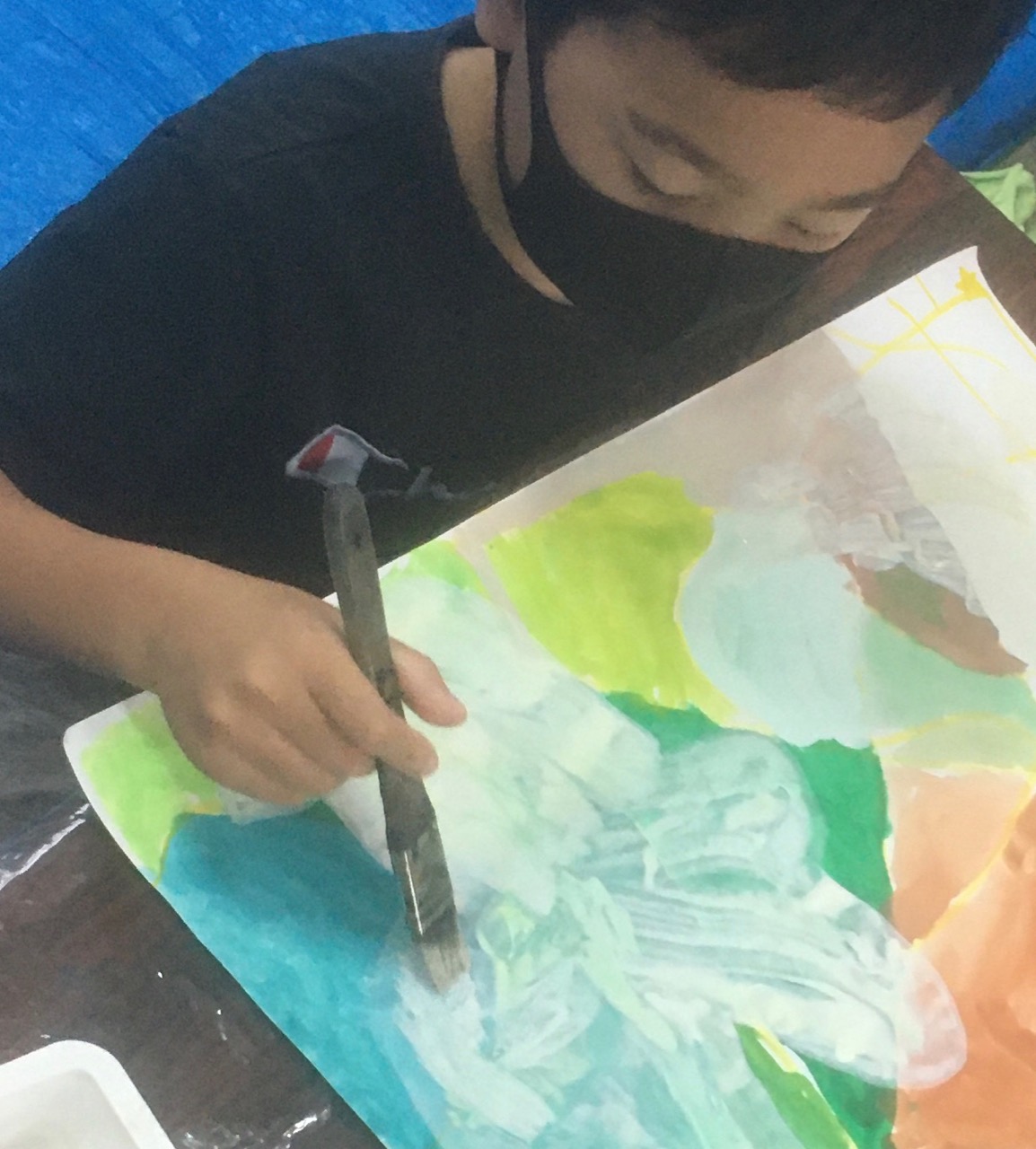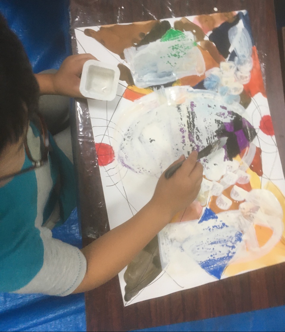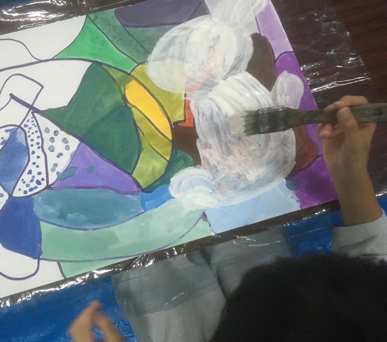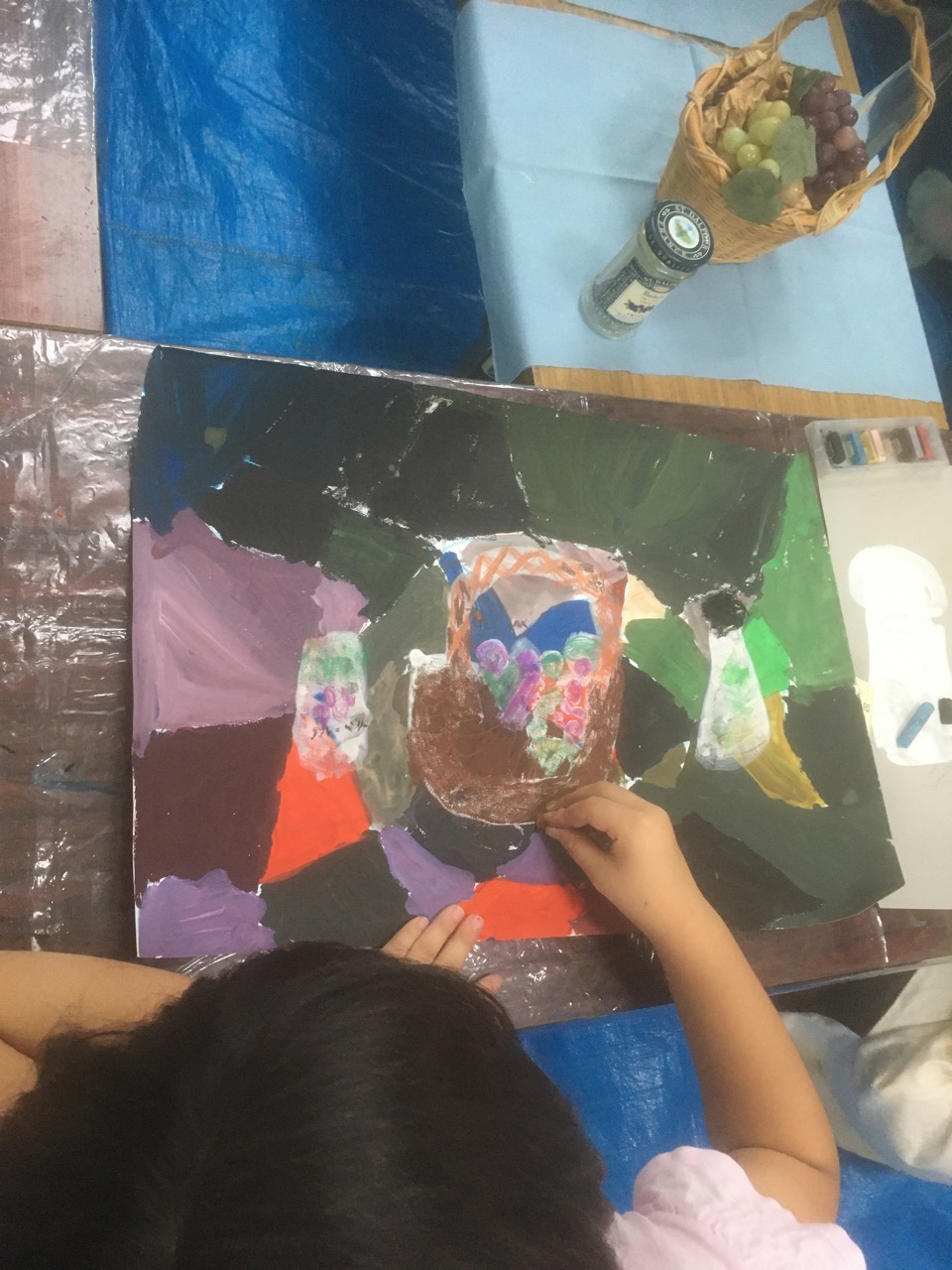 教室の真ん中にパーティー会場のように並べました。