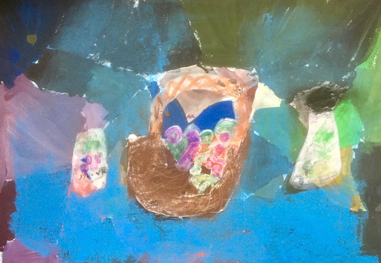 今回はひとつのものをポンッて描くんじゃなくて、アレやらコレやら質感の違うものを組み合わせて描くことにしました。よぉ〜く見て描くわけですが……頭のでかぁ〜い…じゃなくて、かたぁ〜い私には「えっ……ほぉぉぉぉ〜……こんな風になるのかぁ〜」と感動の連続。