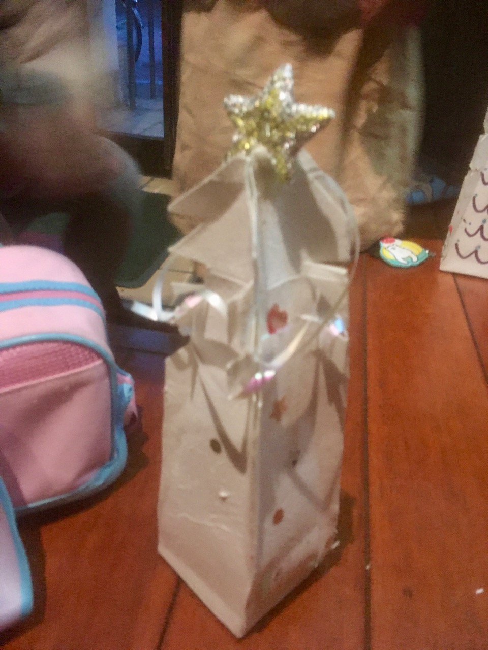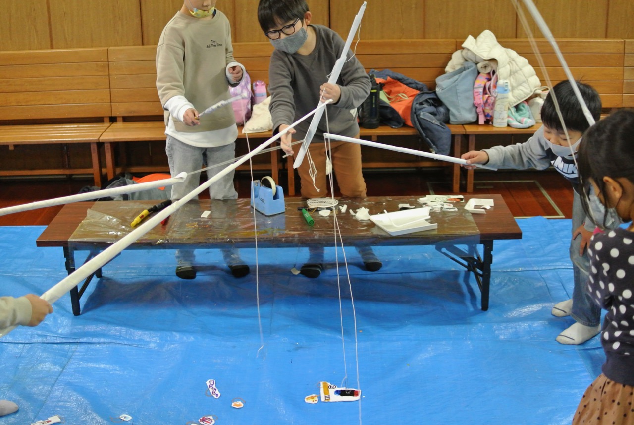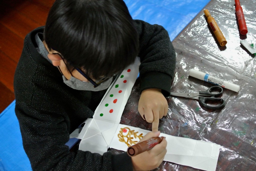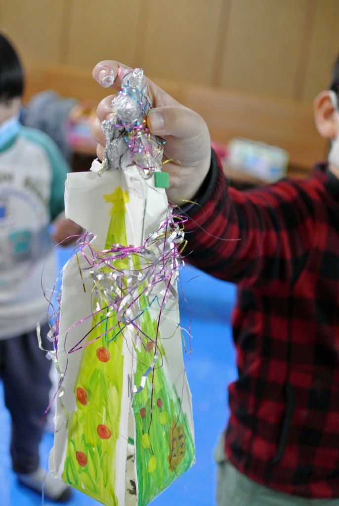 みんなの欲しいプレゼント、あげたいプレゼントを発泡トレーに描いて、切って、ゴムつけて、なが〜いなが〜い竿作って(social distancingね)、ついでにせんせぇからのプレゼントも撒いて、プレゼントつりー!!