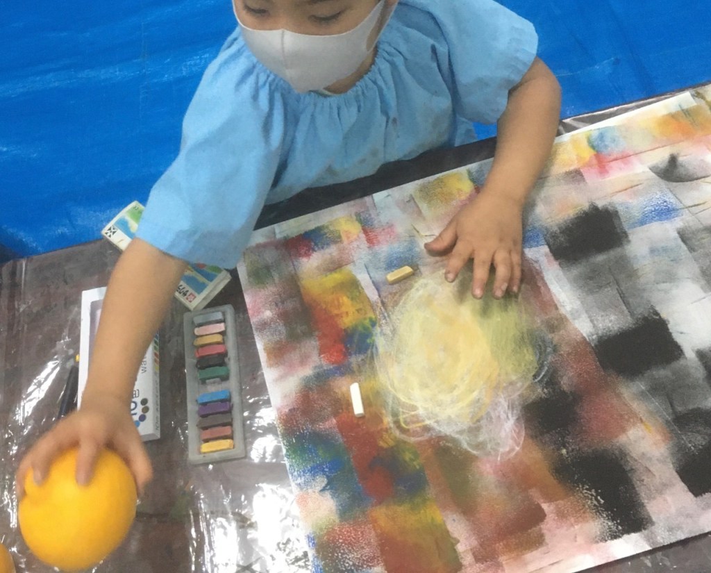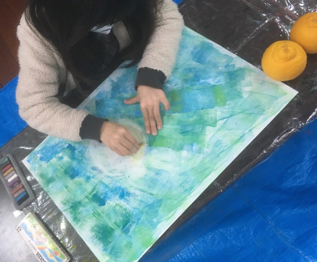 みんな元気な顔、見せてくれました。今月はゆる〜くローラーで遊んでから三宝柑描きました。なかなか味わい深い三宝柑の出来上がり♩