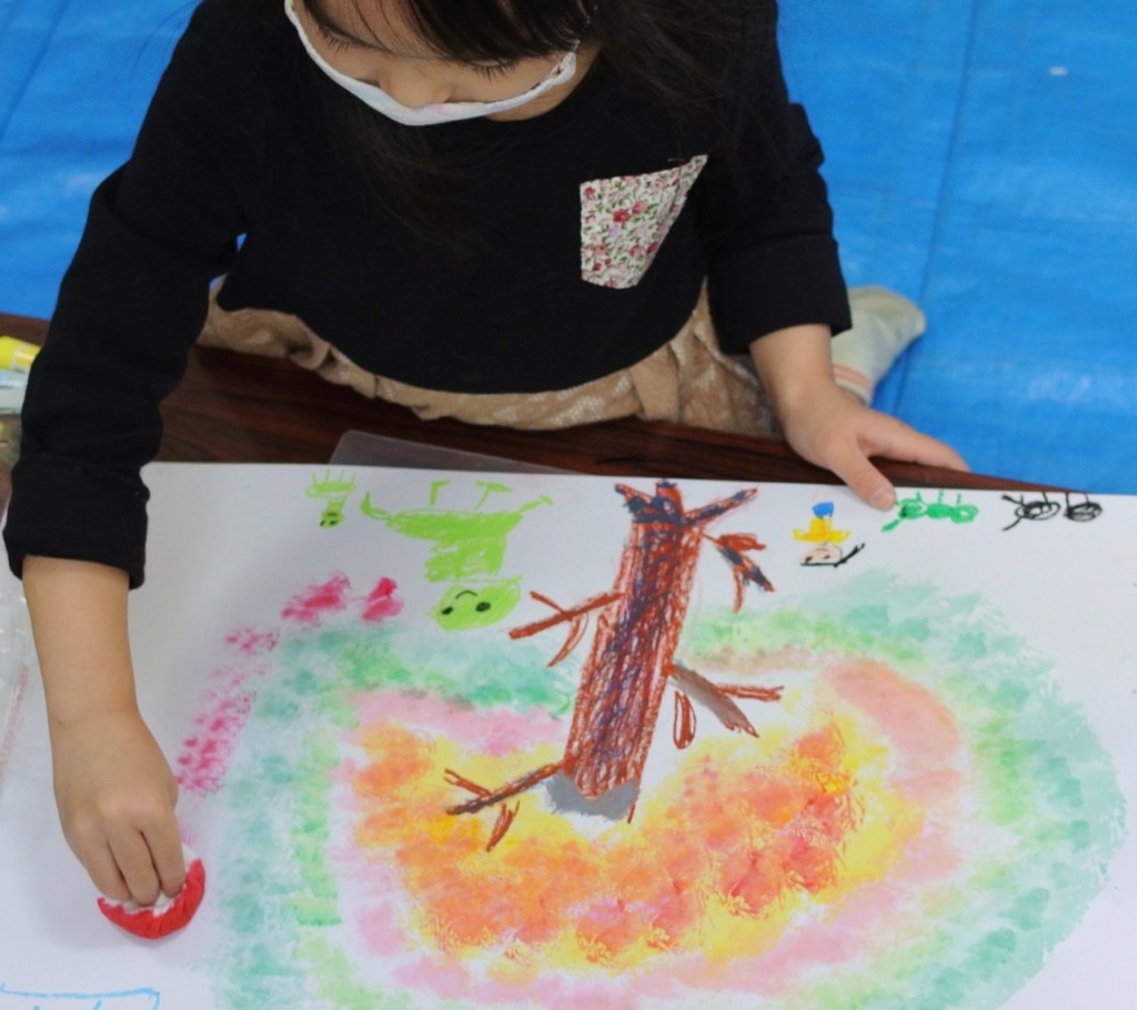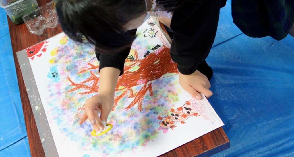 4月のらぴす「ティッシュでアート・・・ふわふわひらひらお花見気分」