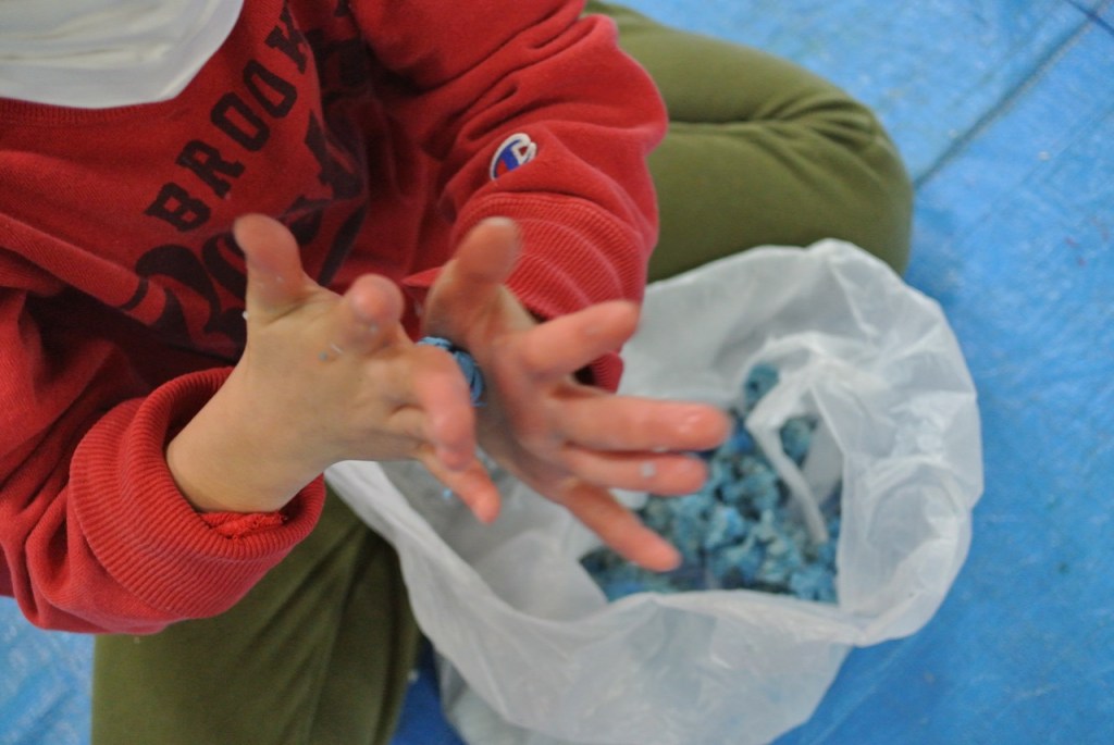 さて、トイレットペーパーで遊びました。結構エキサイティングなので、怪我しないようにただただ見張り番のわたし。みんな思い思いに遊んでくれました。さてさて、この後は・・・
