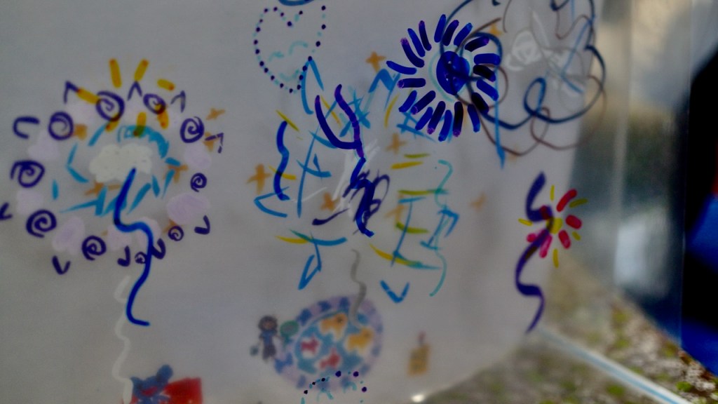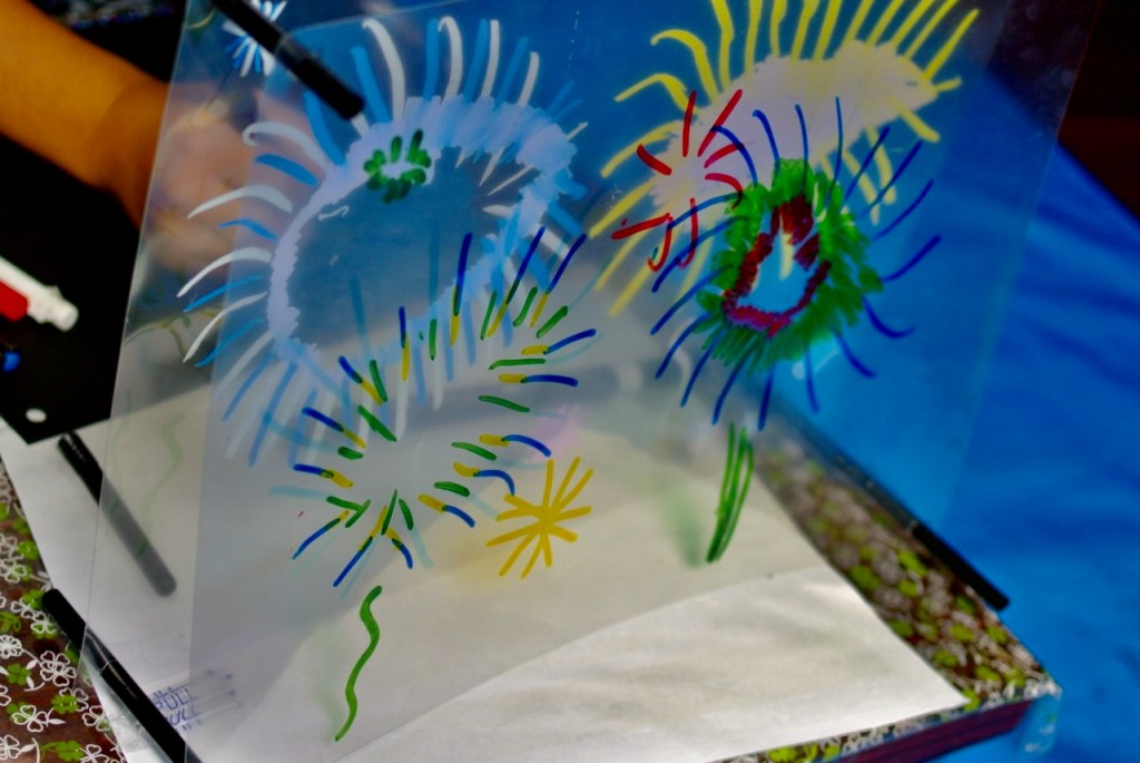まずは透明と不透明を描きくらべ。どんなふうに見えるかな???