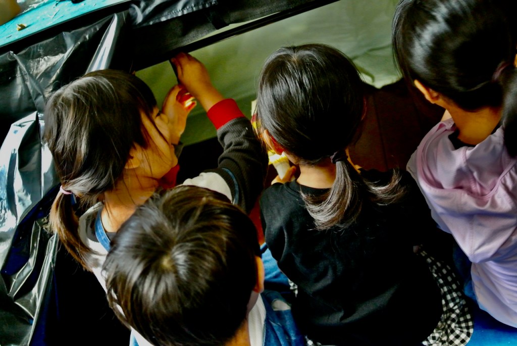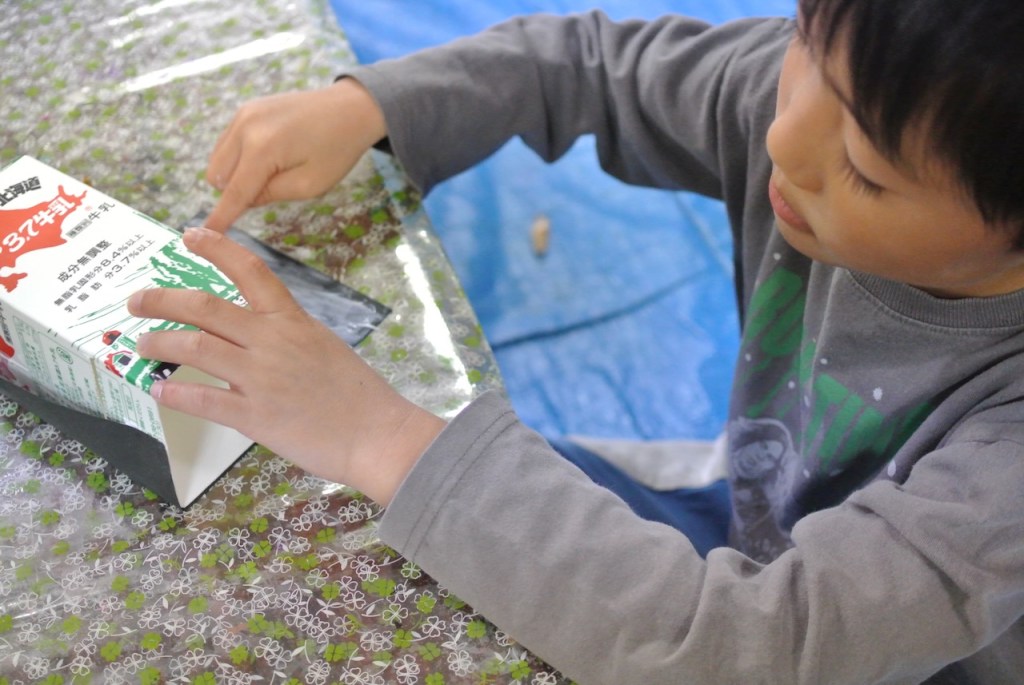 教室には天窓がありまして・・・なかなか暗くすることはむずかしく・・・片隅に暗室をつくってみました。なんちゃってプロジェクターです。
