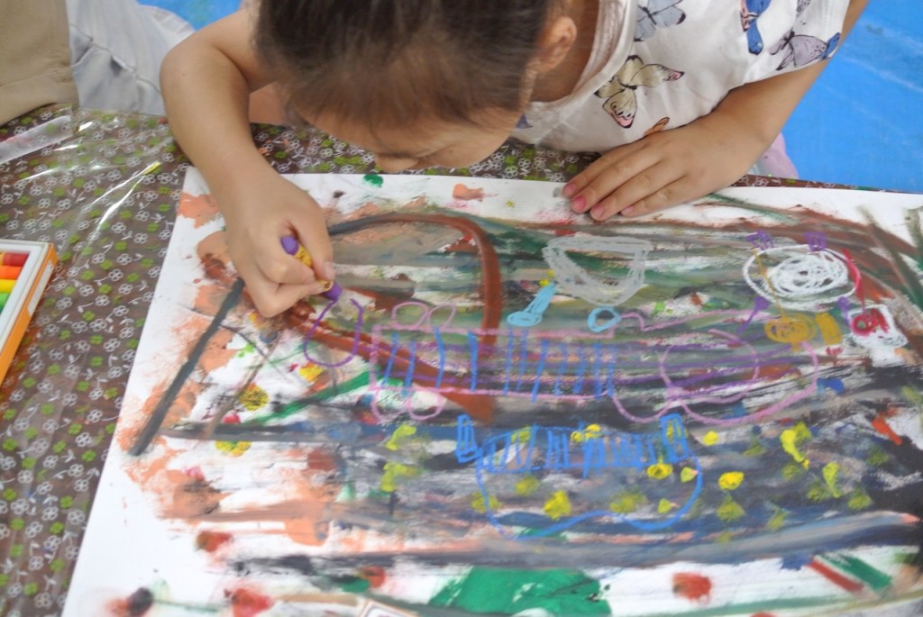 で、ひとしきり遊んだ後、スポンジでリズミカルにポンポンポン・・・穏やかな時間を過ごしました。