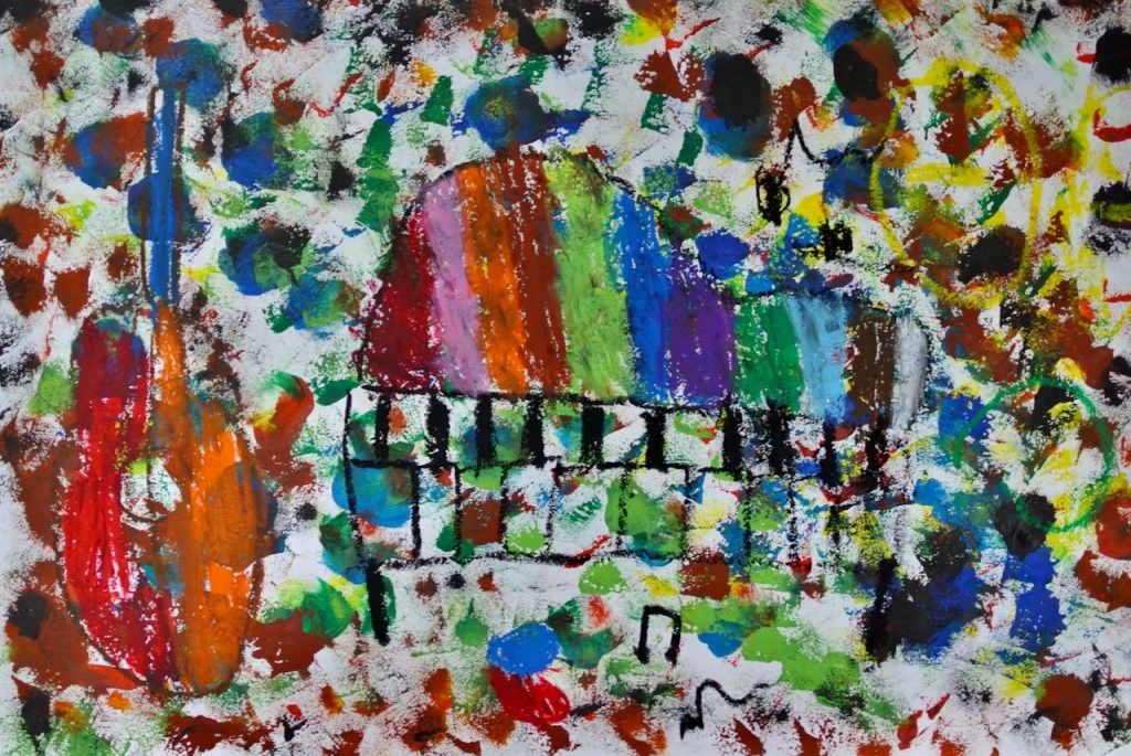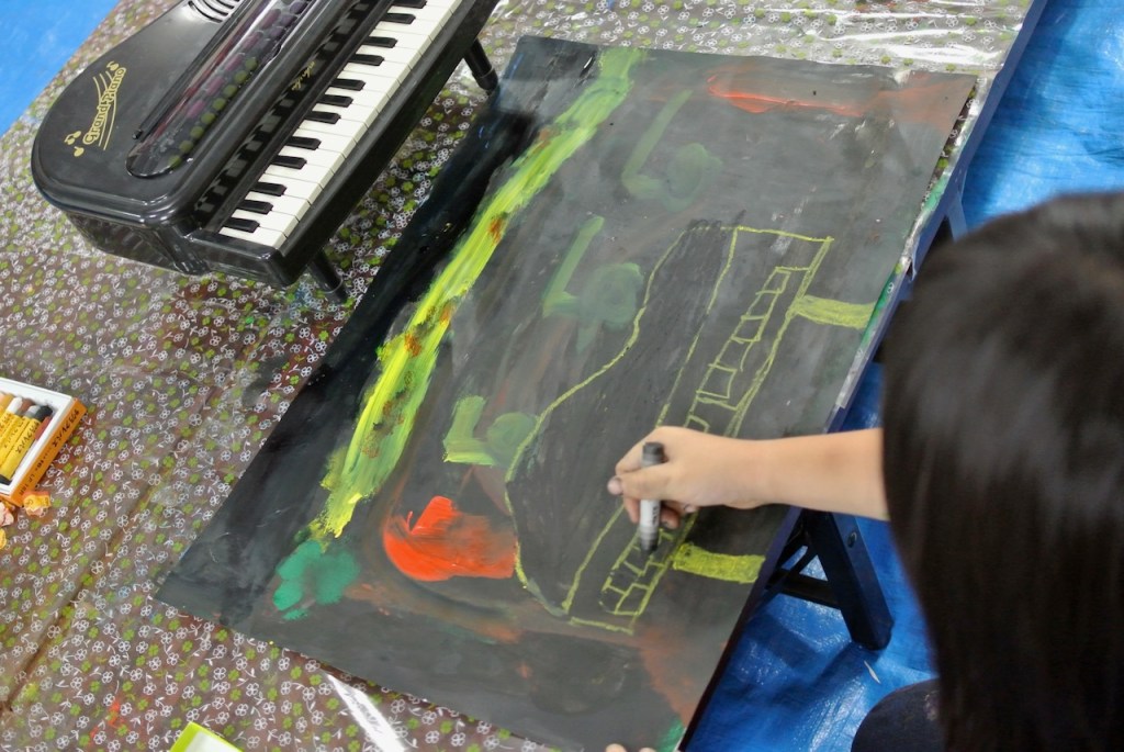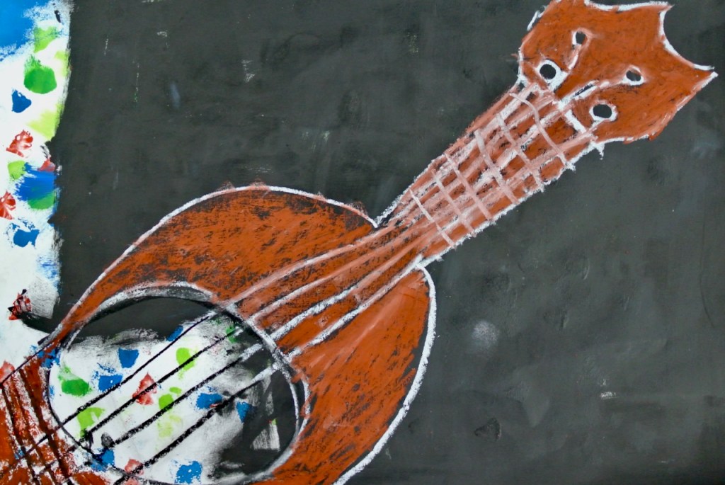 小さな楽器を持っていきました。みんなすぐに集まって、ポンポン・ポロンポロン・ジャカジャカ弾き始めます。