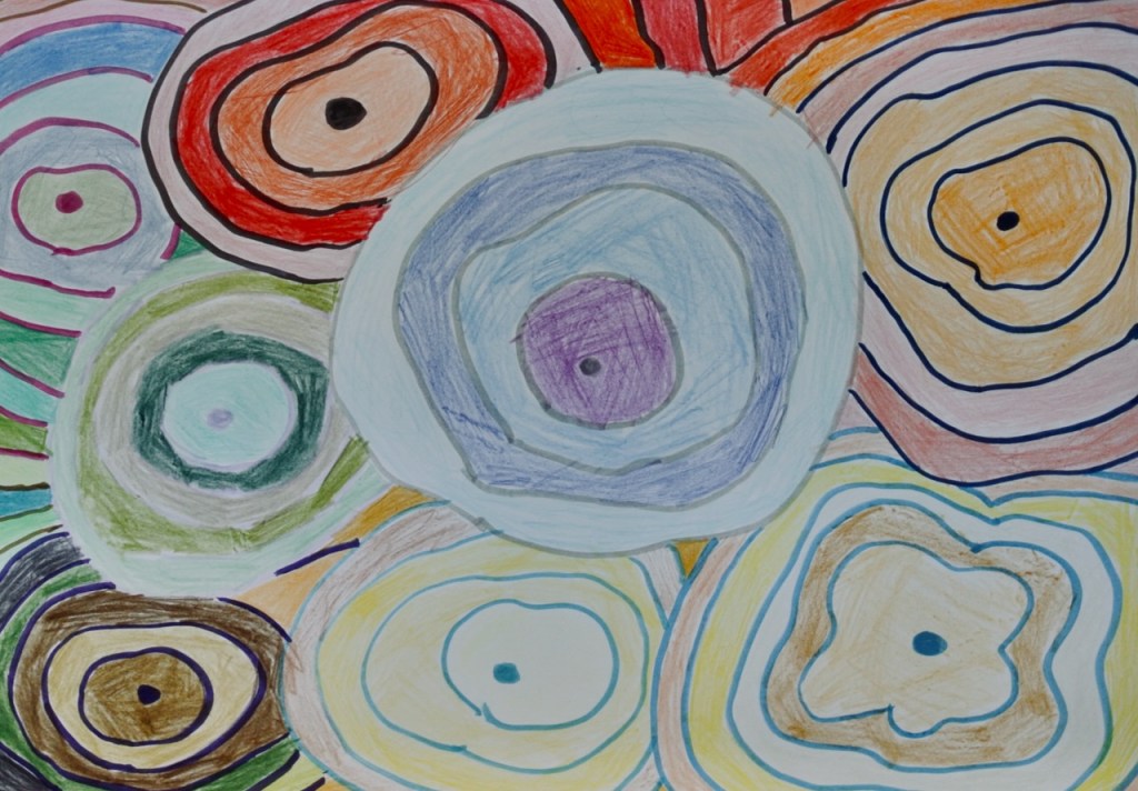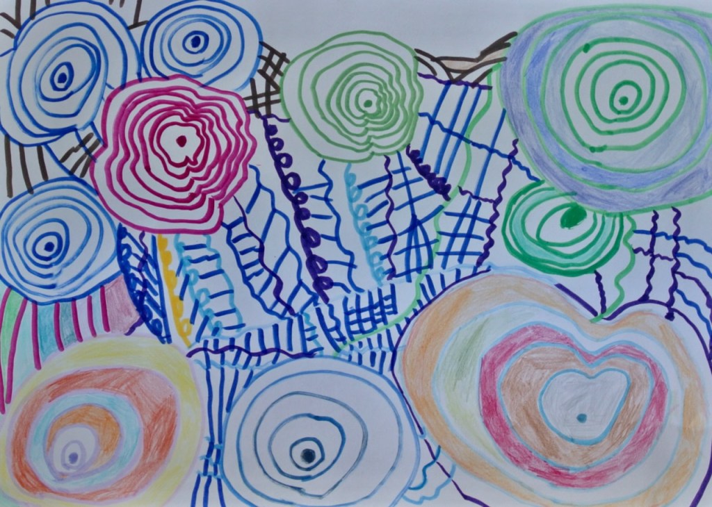 色鉛筆で遊びました。「500色の色鉛筆」ってのを昔某通販で購入しまして・・・「全部違う色で塗ってみよ〜」と、のどかな時間を過ごしました。