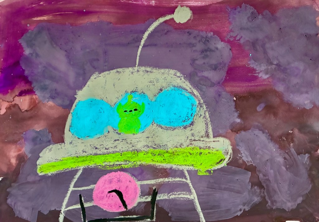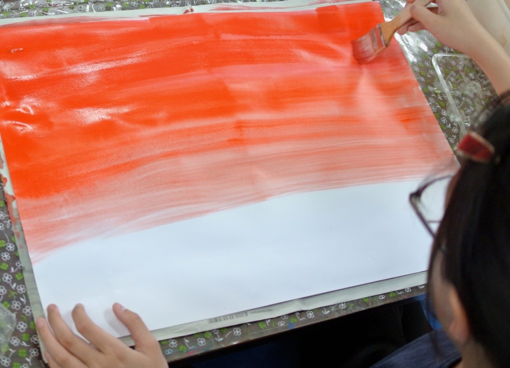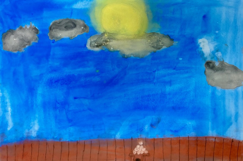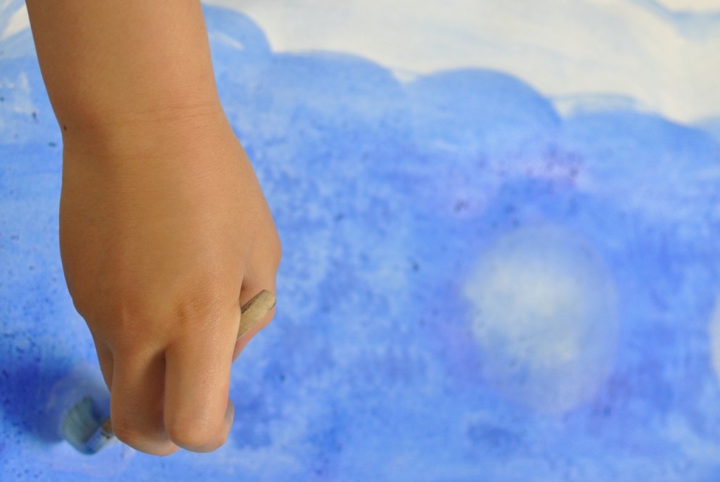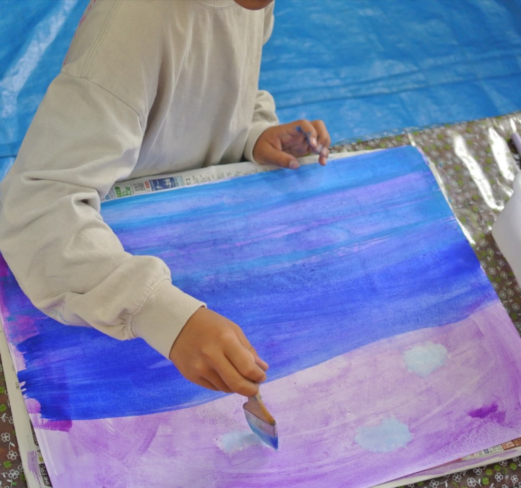 空と雲の画用紙をつくりました。そこに現れたのは・・・
