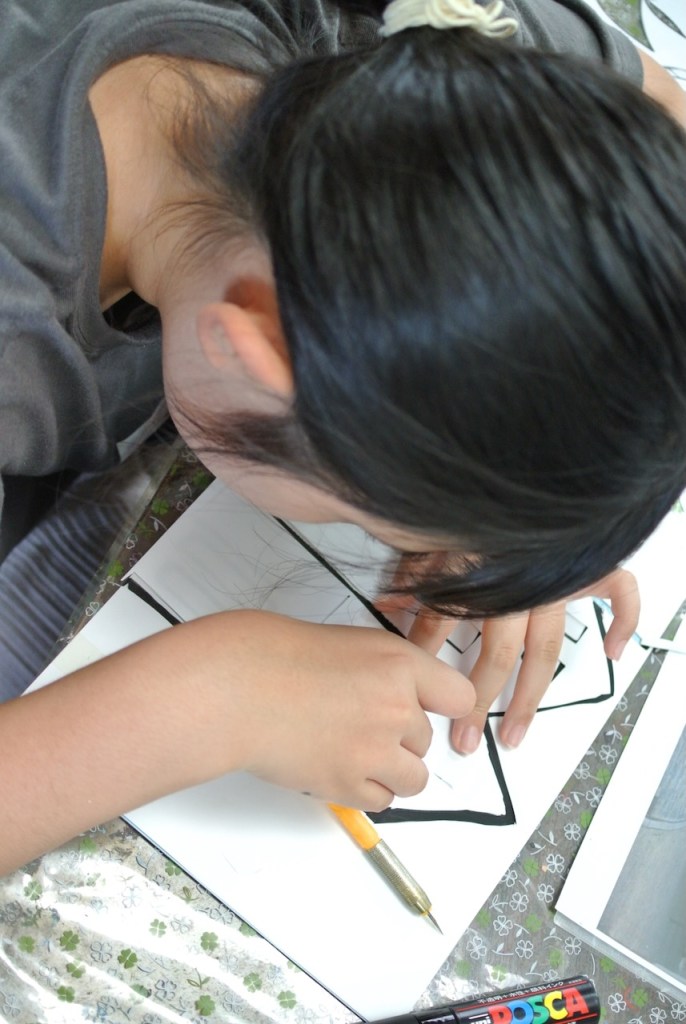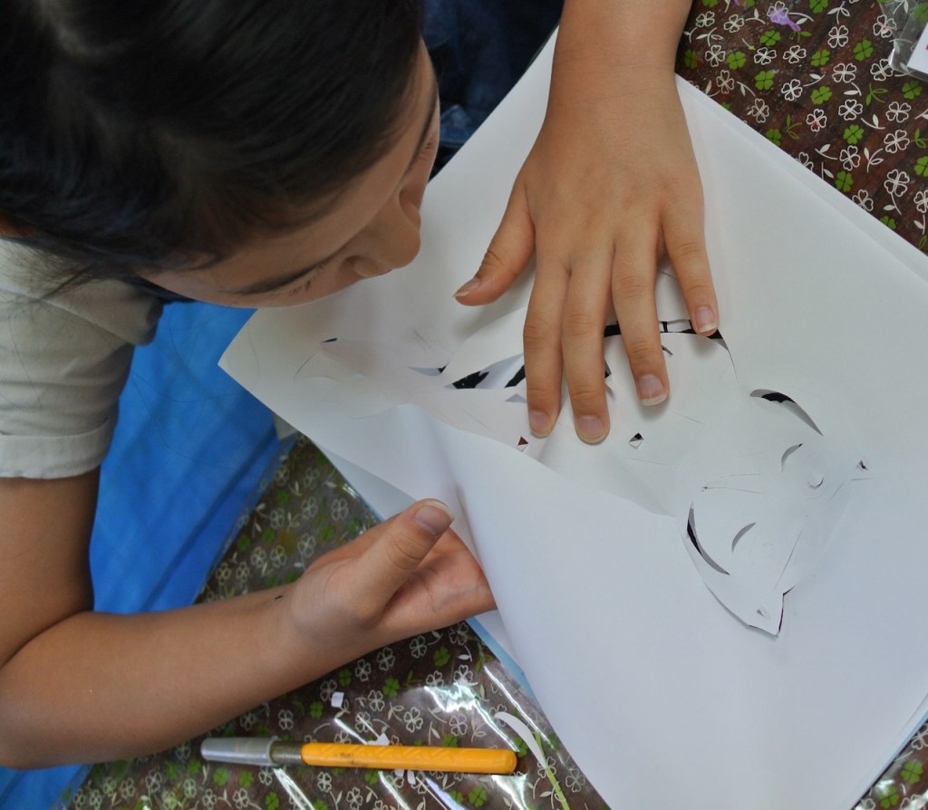 デザインカッターで切り絵です。「つかったことない〜」っていう小さいらぴすっこさんもいたので、まずは練習から。